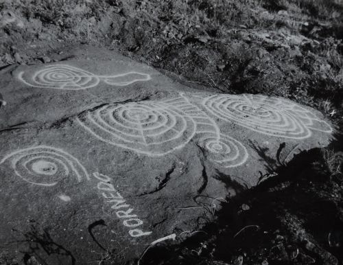 Fotografía tomada por Carlos Paratcha no que puido ser o descubrimento dos petróglifos do Pornedo