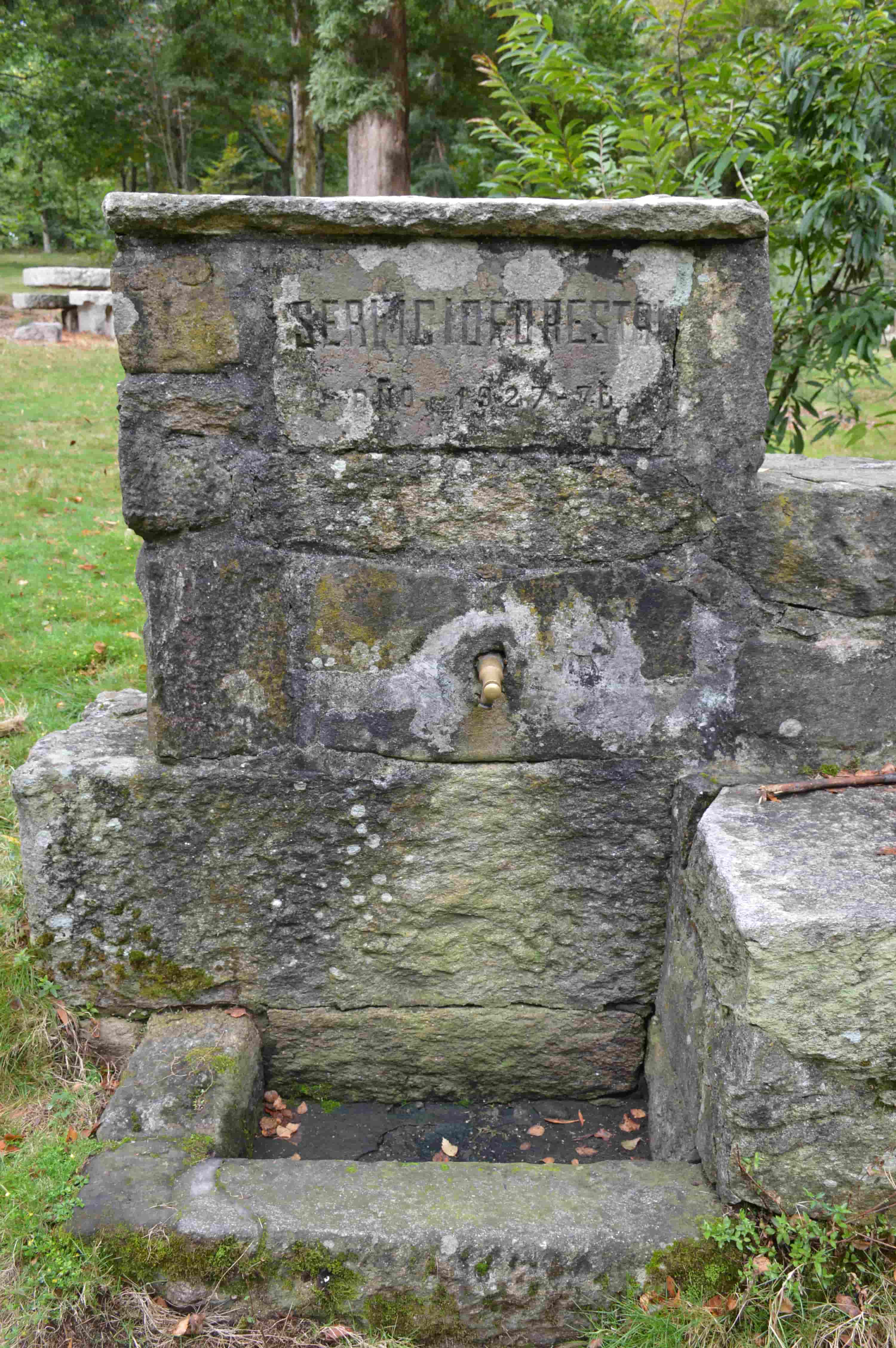 A pouca distancia, no Río de Arcos, nun cruce de camiños dentro da conca alta do río de Campolongo, afluente do Río Maior cuxa desembocadura está na Zona de Especial Conservación (ZEC) da Enseada de San Simón, existe unha pedra fincada que fai a función de soporte dunha fonte. Trátase, en realidade, do esteo dunha mámoa, motivo polo que está inventariado como achado solto de Chan de Castiñeiras, onde probablemente se atope a súa ubicación orixinal.