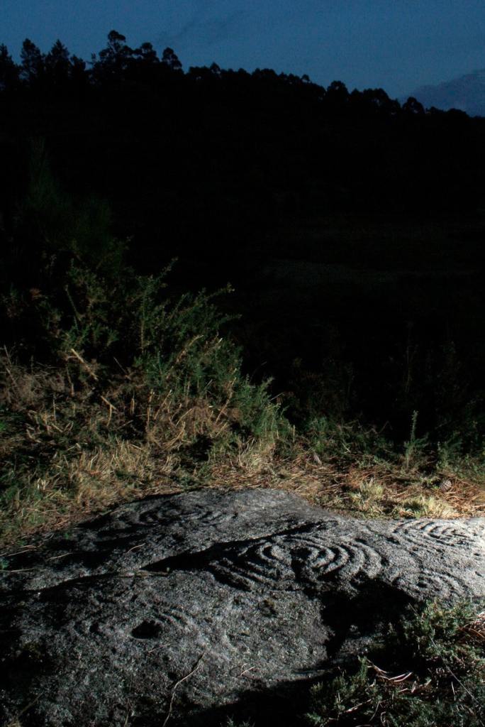 Espectaculares fotografías nocturnas do experto en patrimonio da bisbarra morracense, Paulo Troitiño, no conxunto rupestre do Pornedo, en San Xián, nas que se aprecian os trazos abstractos e as armas gravadas neste xacemento. Unha vergoña e unha irresponsabilidade o pésimo estado no que se atopan actualmente estes Bens de Interese Cultural pola desidia do Concello de Marín e da Comunidade de DESmontes. A providencia dálle patrimonio a quen non o quere coidar.