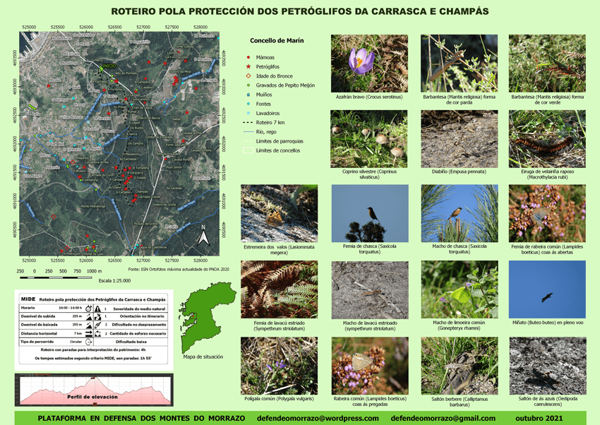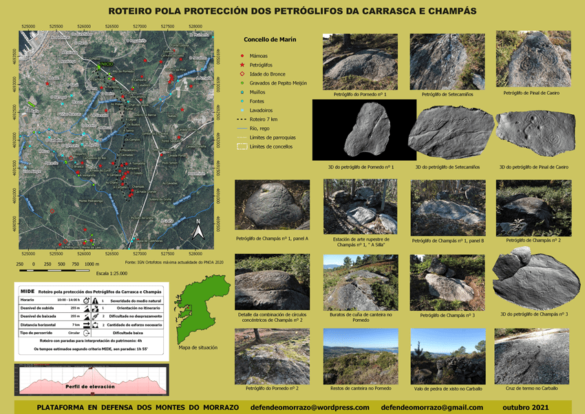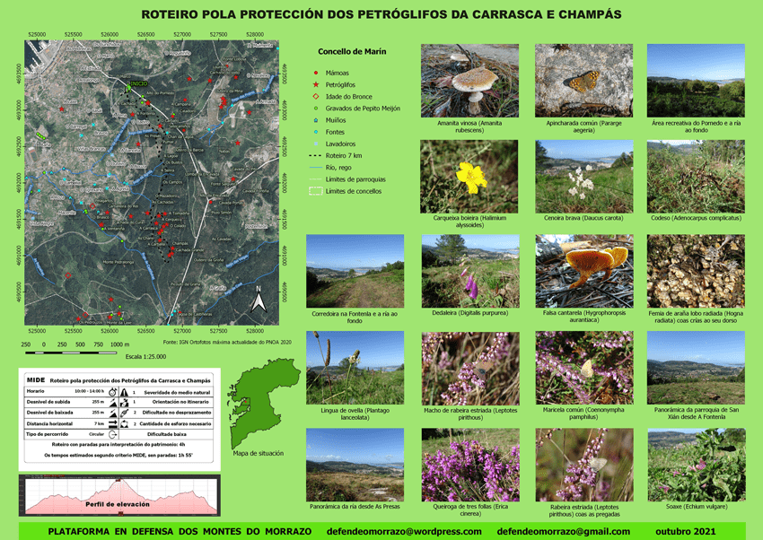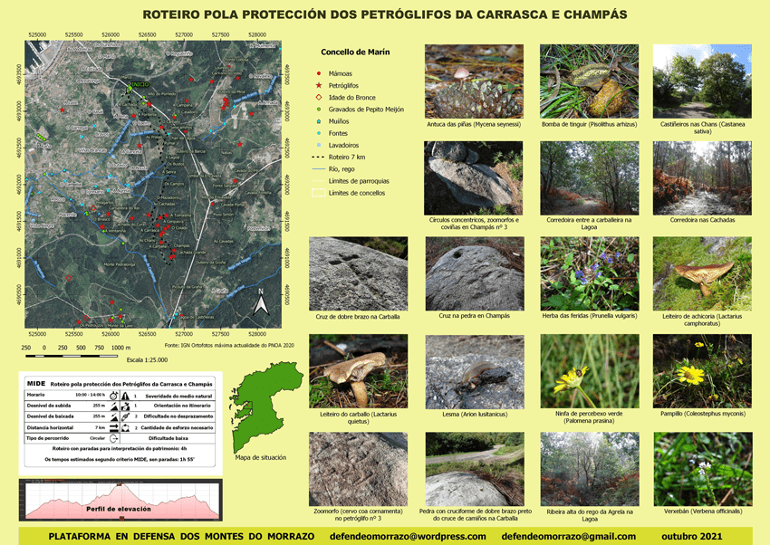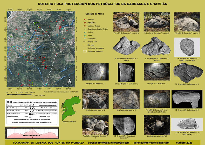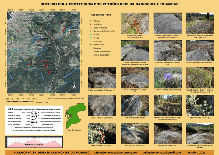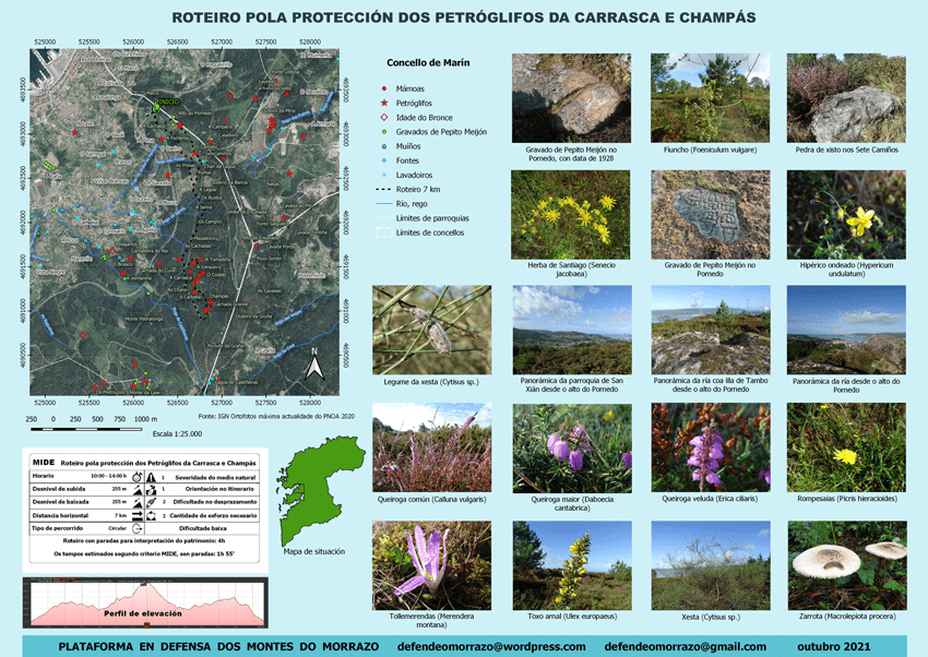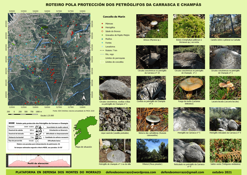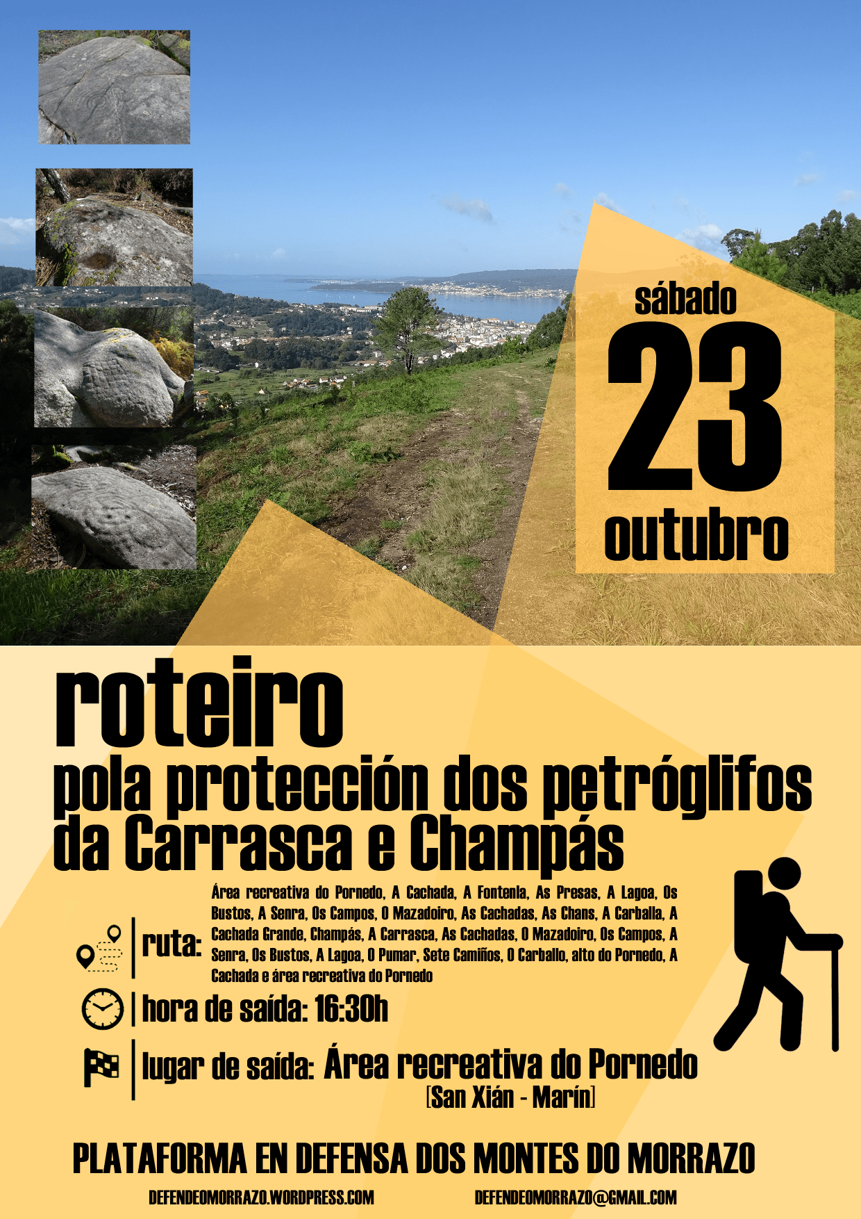No ano da pandemia non foi posible organizar a ‘Andaina polo Monte Pituco ao solpor’ que xa viña sendo unha tradición. Por iso cómpre agradecer que a Plataforma en Defensa dos Montes do Morrazo dedique a próxima ruta desta tempada de outono á promoción dos conxuntos rupestres da Carrasca e de Champás, que formarían parte da prolongación do Espazo Natural e Arqueolóxico dos Sete Camiños para enlazar este itinerario coa Ruta das Mámoas do Morrazo.