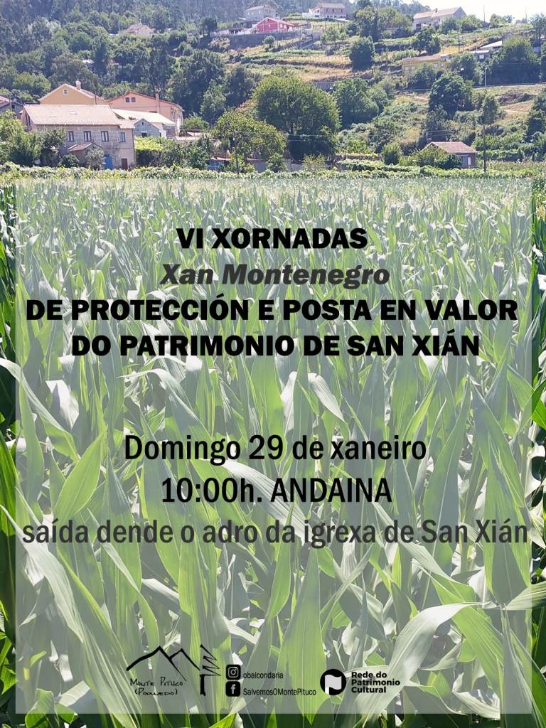 As V Xornadas pola protección e posta en valor do patrimonio de San Xián, que contan co apoio da Rede do Patrimonio Cultural de Galicia á que pertence o Colectivo Monte Pituco, realizaranse mantendo as medidas sanitarias vixentes.