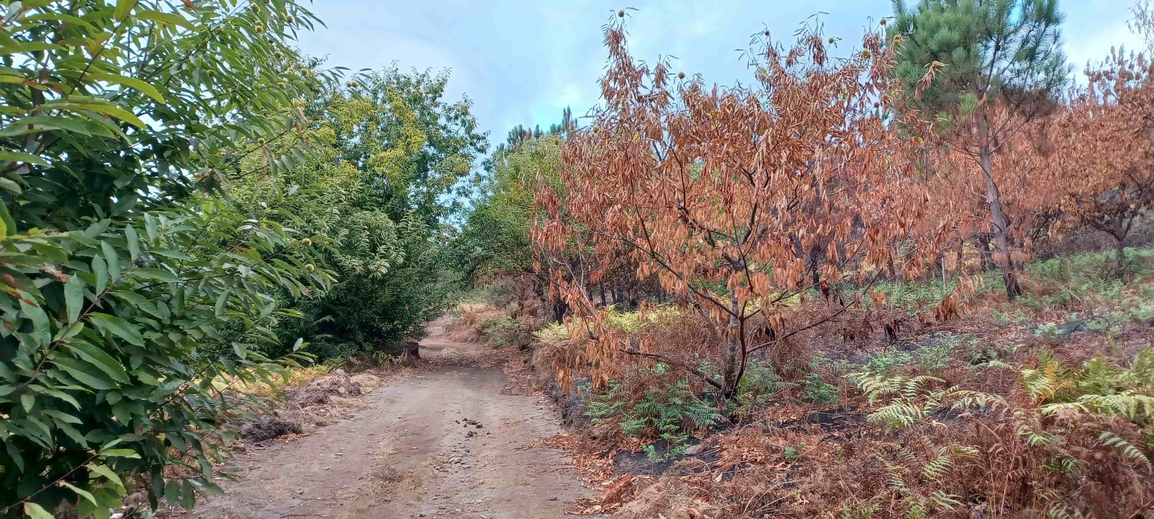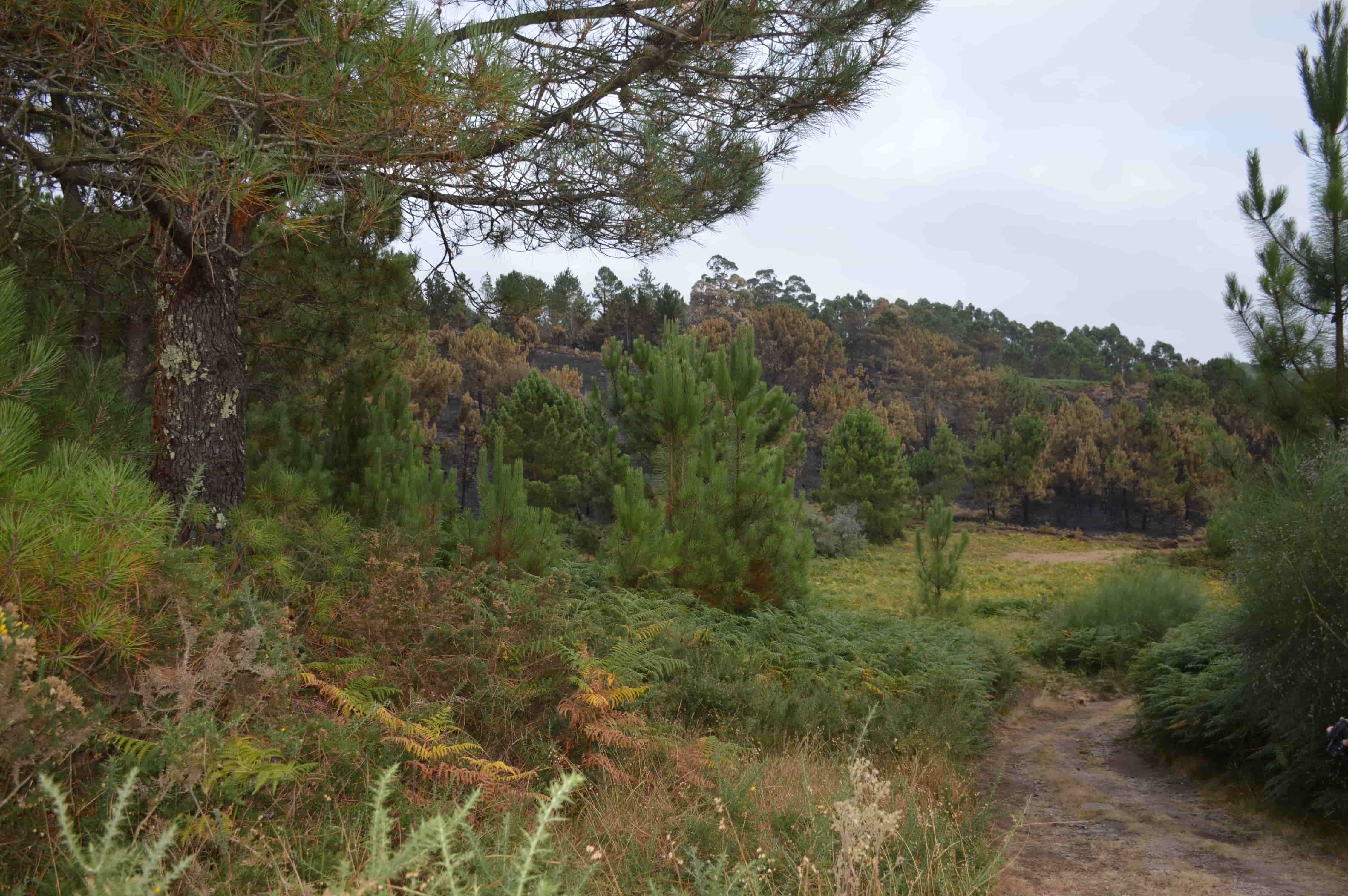 Na senda dos castiñeiros atopamos unha chamativa fronteira natural entre o que ardeu -alimentado pola abundancia de especies pirófitas- e o que sobreviviu, cos ourizos atesourando os froitos dun magosto magoado pola cinza. Esa cinza que aínda se apega aos pulmóns, encollendo o corazón só de imaxinar a magnitude que tería acadado esta traxedia se ocorrese en plena vaga de lumes deste inesquecible mes de agosto, a máis devastadora na historia do país…