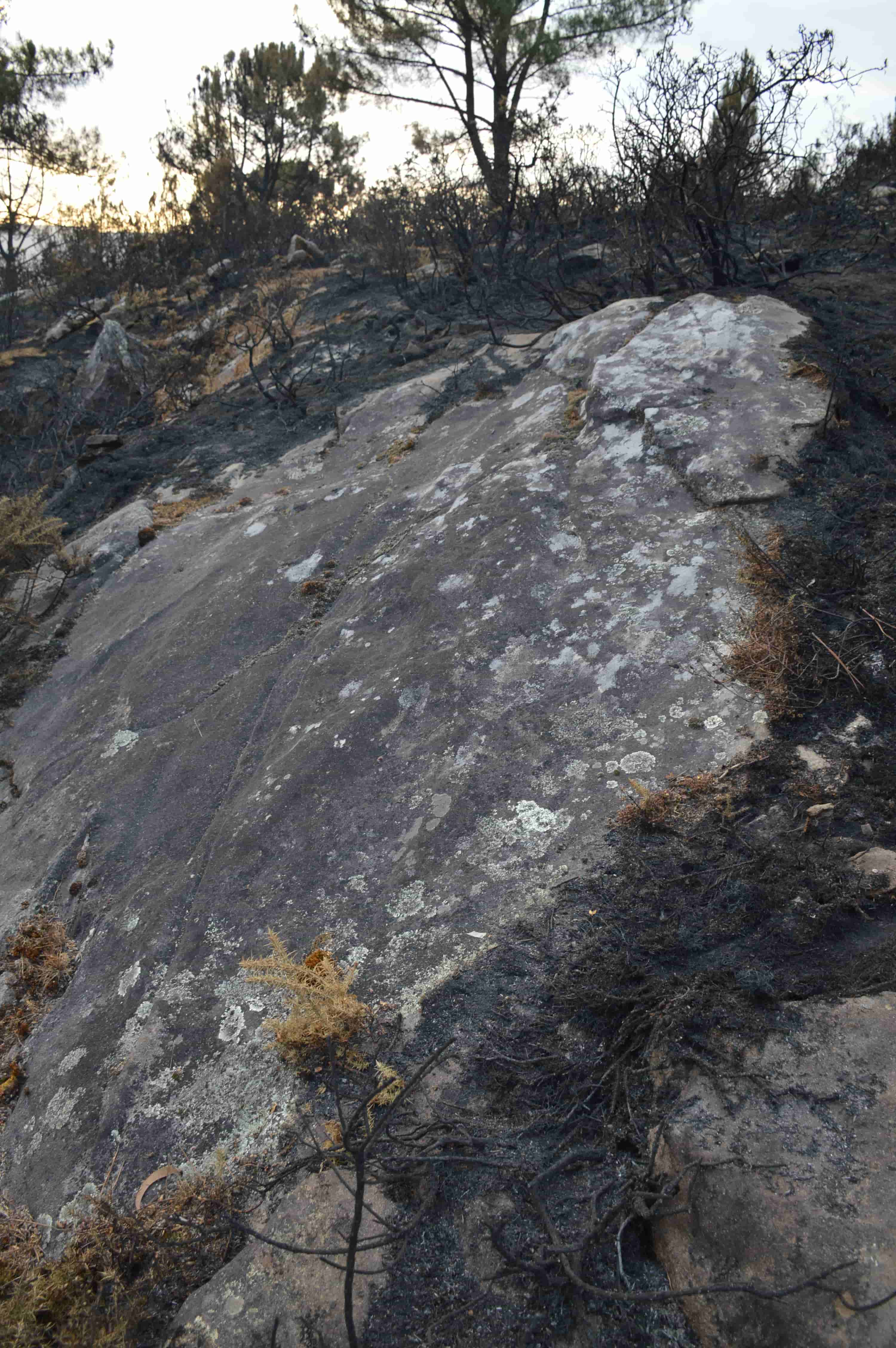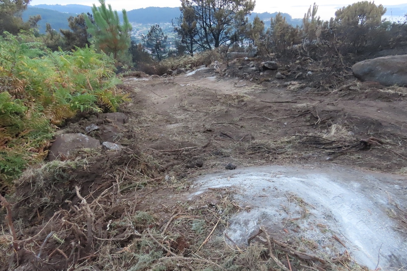 A súa cámara tamén retratou os danos que causaron as lapas na área de protección de cautela do conxunto rupestre do Pornedo e na área de protección integral do petroglifo de Sete Camiños, na masa forestal e na matogueira, ademais dos movementos de terras realizados con maquinaria pesada durante os labores de extinción.