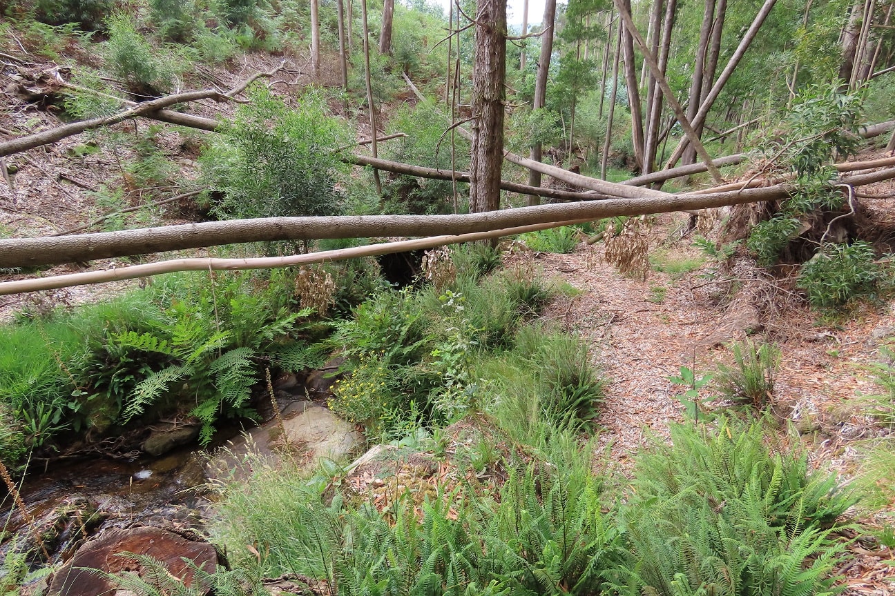 Na actualidade, despois máis de catro meses, a situación ambiental empiorou polo crecemento de vexetación ao redor dos restos das talas e da ramaxe depositada sen control na ribeira e o propio cauce do río de Castiñeiras, a maioría dela pirófita e invasora (Eucaliptus globulus e Acacia melanoxylon) ao que se lle engade que a contorna e en pendiente estase a cubrir cos rebrotes de tocón do eucaliptal talado a matarrasa pola Comunidade de Montes nas dúas parcelas na súa propiedade.