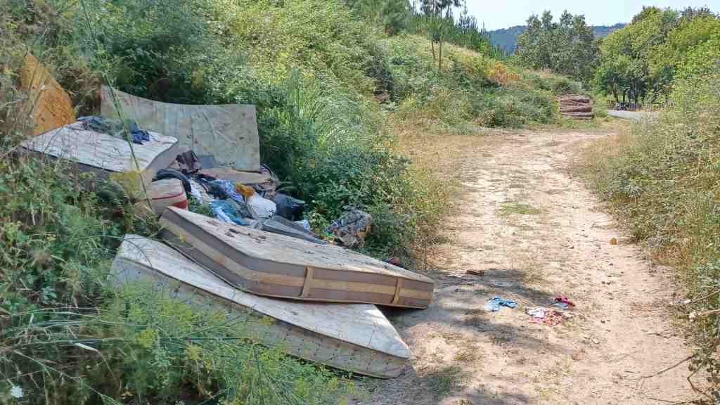Sucedeu así o pasado domingo, a poucas horas de que se celebrara a asemblea de comuneir@s máis esperpéntica dos últimos anos. Soubemos por un axente que estaban investigando a procedencia dun verquido ilegal que se producira nas inmediacións da pista de acceso ao monte. O que atopamos cando puidemos achegarnos ata a zona foi un montón de colchóns con excrementos, maletas baleiras, roupa vella e outros enseres cheos de suciedade, como restos de ter desaloxado un faiado. A Policía Local confirmounos pouco despois que os autores deste vertedoiro noxento e nauseabundo estaban localizados, que se lles impoñería unha sanción e que se non retiraban o lixo nas vindeiras horas, o propio Concello se encargaría da limpeza e lles cobraría o importe do operativo.