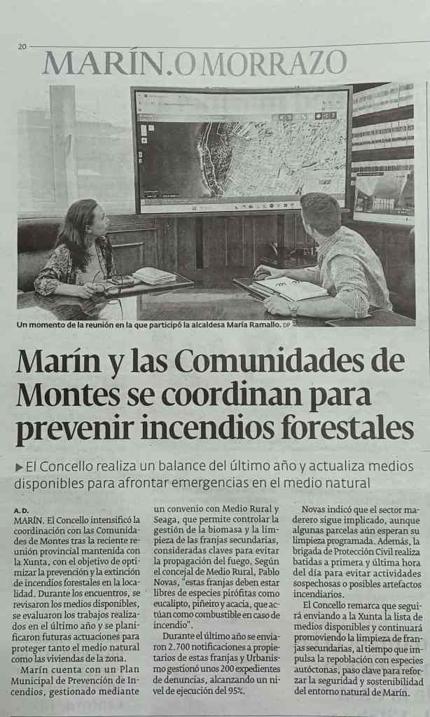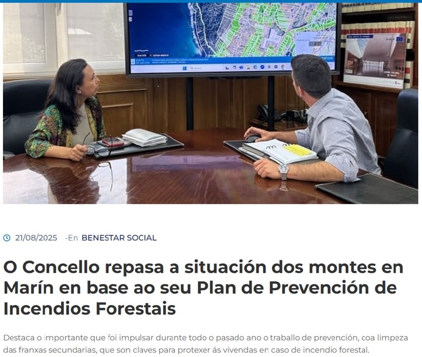 O mesmo día no que vemos na prensa local a repercusión da concentración organizada pola Plataforma Por un monte galego con futuro -representada en Pontevedra pola Asociación Pola Defensa da Ría– contra esta terrible vaga de lumes forestais, lemos tamén que o Goberno local de Marín está contactando coas comunidades de montes “co obxectivo de coordinar esforzos, actualizar medios a disposición cos que se pode contar de cara á extinción de incendios e para facer balance do traballo de prevención que se vén realizando no último ano”, informa a web municipal. Isto, despois de que a Xunta convocara os alcaldes e alcaldesas a unha reunión virtual xusto cando Galicia arde polos catro costados, batindo todas as marcas históricas pola extensión da superficie queimada e polas perdas incalculables no patrimonio natural, cultural e no medio de vida de milleiros de familias afectadas polas lapas.