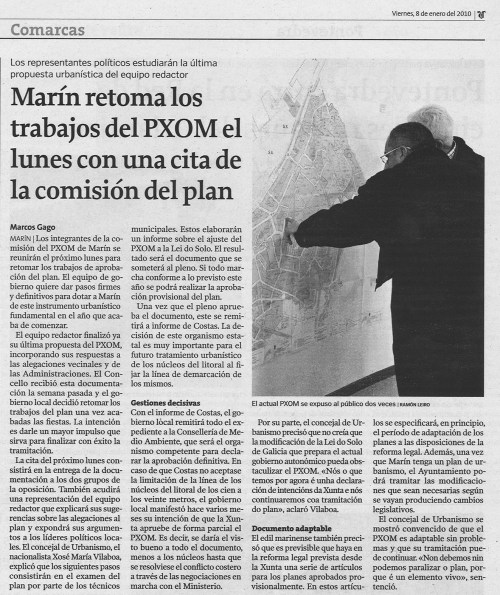 […] xaneiro de 2010, casualmente por estas mesmas datas, a prensa local anunciaba a celebración dunha reunión da Comisión especial de Urbanismo que traballaba a toda mecha para acelerar a aprobación do Planeamento urbanístico. Daquela, o […]