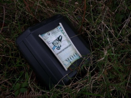 INICIATIVA ‘EUCALIPTOS NON’ » Unha garrafa de gasolina para motoserra, tirada no monte_foto de Ar Ceive, en Facebook