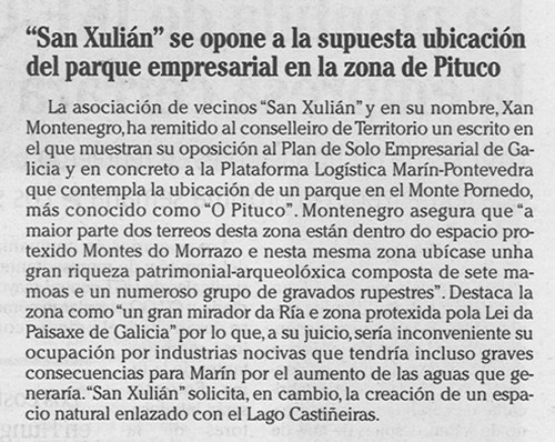O TSXG declara FIRME a sentenza que ordea retirar do PXOM de Marín o polígono proxectado no Monte Pituco (xaneiro 2018)