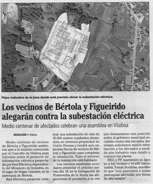 Por eso chama a atención que no concello limítrofe de Vilaboa o alcalde faga fronte común coa cidadanía no rexeitamento á construcción dunha subestación eléctrica. Se fora cousa boa, dende logo, non lle farían ascos. De aí que resulte anómala e sospeitosa a actitude do Concello de Marín e de colectivos cómplices como a Comunidade de Montes de San Xulián, que chimpan para o Pituco-Pornedo toda canta trapallada desbotan arredor.
