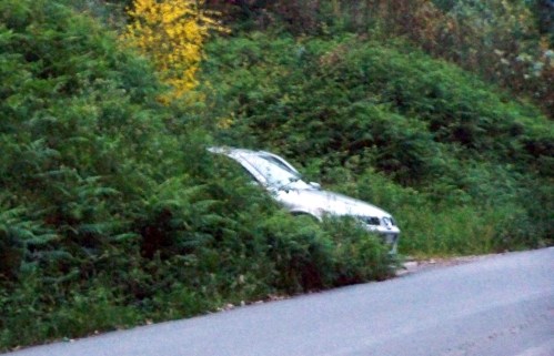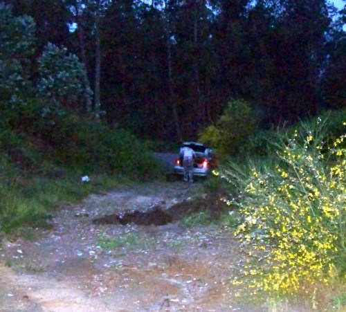 O vehículo, ben metido no camiño: unha de dúas, non fora levantar sospeitas ao mesmo pé da estrada ou ben non se fora herniar transportando os capachos, que aínda eran uns cantos e ben cargados de restos de obra. Marchamos do lugar cando o suxeito intenta articular unha xustificación pacata e fulera: “…E logo quen botou o que xa estaba?”