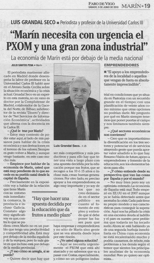 Por fin puidemos agradecerlle verbal e persoalmente a Erasmo o que moitas veces puxo por escrito no foro marinenses.com: o seu posicionamento a prol da conservación do Monte Pituco e a súa firme aposta pola ubicación dun polígono industrial noutra ubicación, con maior proxección de futuro e menor impacto ambiental. Foi posible grazas á iniciativa do Ateneo Santa Cecilia, que invitou a este profesor marinense da Universidade Carlos III de Madrid a impartir unha charla sobre o adverso contexto económico actual e a súa repercusión no noso ámbito autonómico e local.
