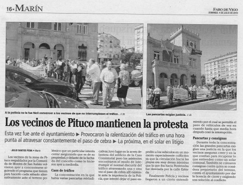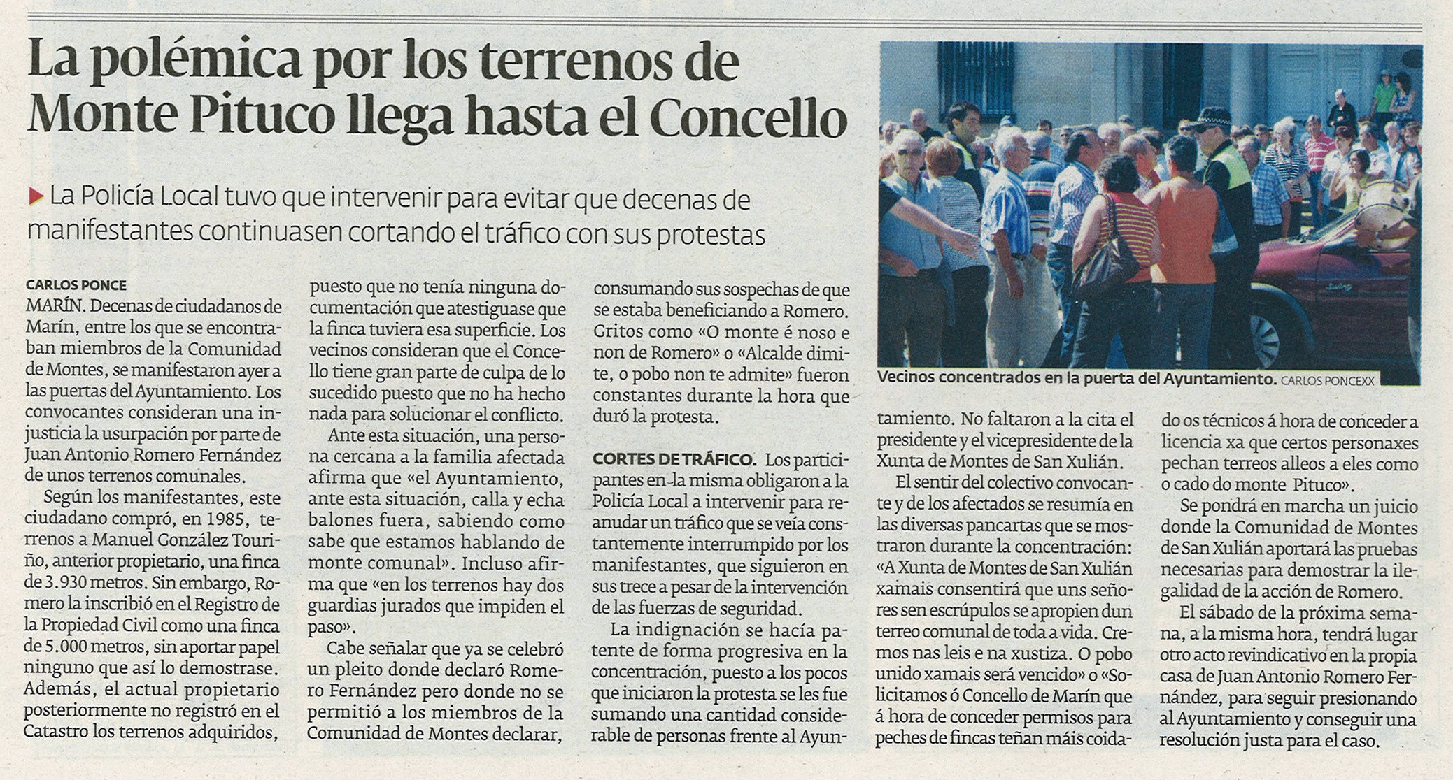 Durou unha hora a concentración-paseo. E cando estaban pregando as pancartas, preguntáballe un axente local a outro da Policía Nacional: “Ides facer minuta?”. A resposta foi inaudible, ou non existiu. O certo, en todo caso, é que a mobilización convocada pola Comunidade de Montes raia por momentos na a-legalidade: un pouco máis aló da delgada liña entre o ben e o mal, dende o punto de vista administrativo, e as sancións caerán seguro. Co doado que é deixar actuar a xustiza, por moita pacencia que requira seguir esa vía. Pero xa o dicía a persoa que deu a voz de alarma, aínda parecendo un caso evidente de usurpación dunha parcela de monte veciñal: “A Comunidade de Montes foi ao barato, ao económico”.