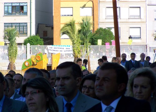 Por outro lado, as intervencións. Mentres o ministro de Fomento fixo o seu previsible discurso político, e mentres o presidente da Autoridade Portuaria falou dos retos e das necesidades do porto en materia de comunicacións e de expansión en superficie, o presidente da Xunta deleitounos cun sermón entre o institucional e o literario, no que non faltou unha cita a Celso Emilio Ferreiro. Pero o súmmum foron as verbas do alcalde, que por uns momentos nos fixeron dubidar aos sufridos presentes se estabamos na estrea das instalacións portuarias e da remodelación da praza de Cantodarea, ou na inaguración duns xogos florais (certames literarios promotores e difusores dunha lingua, nos que se premian obras literarias en prosa e en verso, segundo a definición da Wikipedia). Verbi gratia: