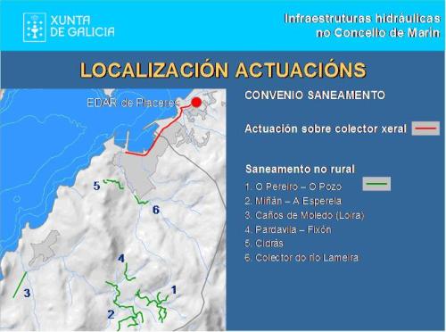 Ademais do saneamento de diversas parroquias do rural de Marín, o convenio contempla actuacións que permitirán regular e controlar os caudais de auga no colector xeral do concello, o que repercutirá directamente na mellora do funcionamento da estación depuradora de augas residuais (EDAR) de Praceres.
