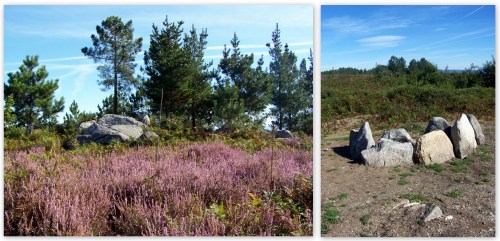 …E da ribeira, á matogueira, atravesando Chan do Vilar, xa nos límites de Vilaboa. O toxo comeza a florecer e a cor amarela da chorima contrasta co rosáceo do carrasco e do breixo, e coas árbores aínda novas das recentes repoboacións. Entre toda esta biodiversidade, imos atopando tamén xoias da Historia: petroglifos, mámoas… Chegamos á famosa Mámoa do Rei, nun recinto valado no que destaca a restauración deste monumento megalítico milenario. Seica o libro do Ciprianillo relataba no século X que no interior destas construccións se agochaban tesouros de valor incalculable e que na Idade Media os nobres promoveron salvaxes batidas para localizalos, o que supuxo a destrucción de numerosos xacementos que, pacificamente, se foran conservando nos nosos montes dende hai 2.000 ou 4.000 anos antes de Cristo. Barbaridades…