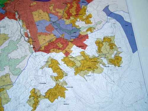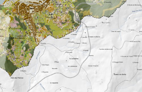…Pois aí está a “marabillosa” mancha de azul desteñido que representa o espazo onde o Concello de Marín prevé instalar o polígono industrial. Admiren a súas tupidas curvas de nivel, tomen a pastilla para o mareo se teñen vértigo e agárrense á primeira xesta que atopen na baixada non sexa que esbaren monte abaixo a rebolos…