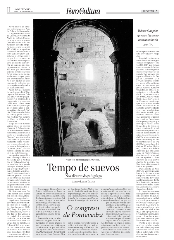 Ao seu carón, para presentar a súa conferencia sentouse outro marinense: Francisco José Padín, que é un dos organizadores deste Congreso sobre o Reino Suevo de Galicia. Xosé Bernárdez coincide con eles en que esta etapa foi “moi maltratada” dende o punto de vista da investigación histórica: