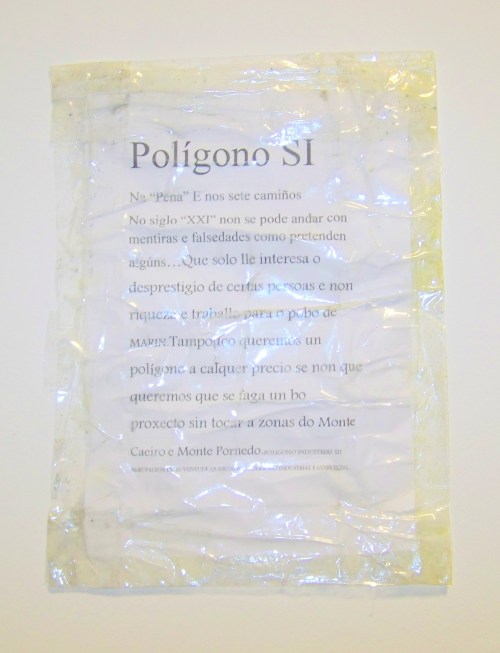 Quen está detrás deste simple folio está tamén detrás destoutro cartel que segue a continuación, asinado pola Comunidade de Montes e exposto publicamente en xullo de 2010 (premer na foto para ler o artigo co que corresponde). É o mesmo estilo impropio e demagóxico. Eses folios “pro-polígono” están colocado a carón do gran cartel que anuncia o baile de Reis na Casa de Montes de San Xulián, pegados coa mesma cinta adhesiva, por tanto, postos polas mesmas mans. A xunta rectora da Comunidade de Montes e os seus afíns fanse chamar agora “agrupación de xuventude queremos o polígono industrial e comercial”. O mesmo can, con distinto collar.