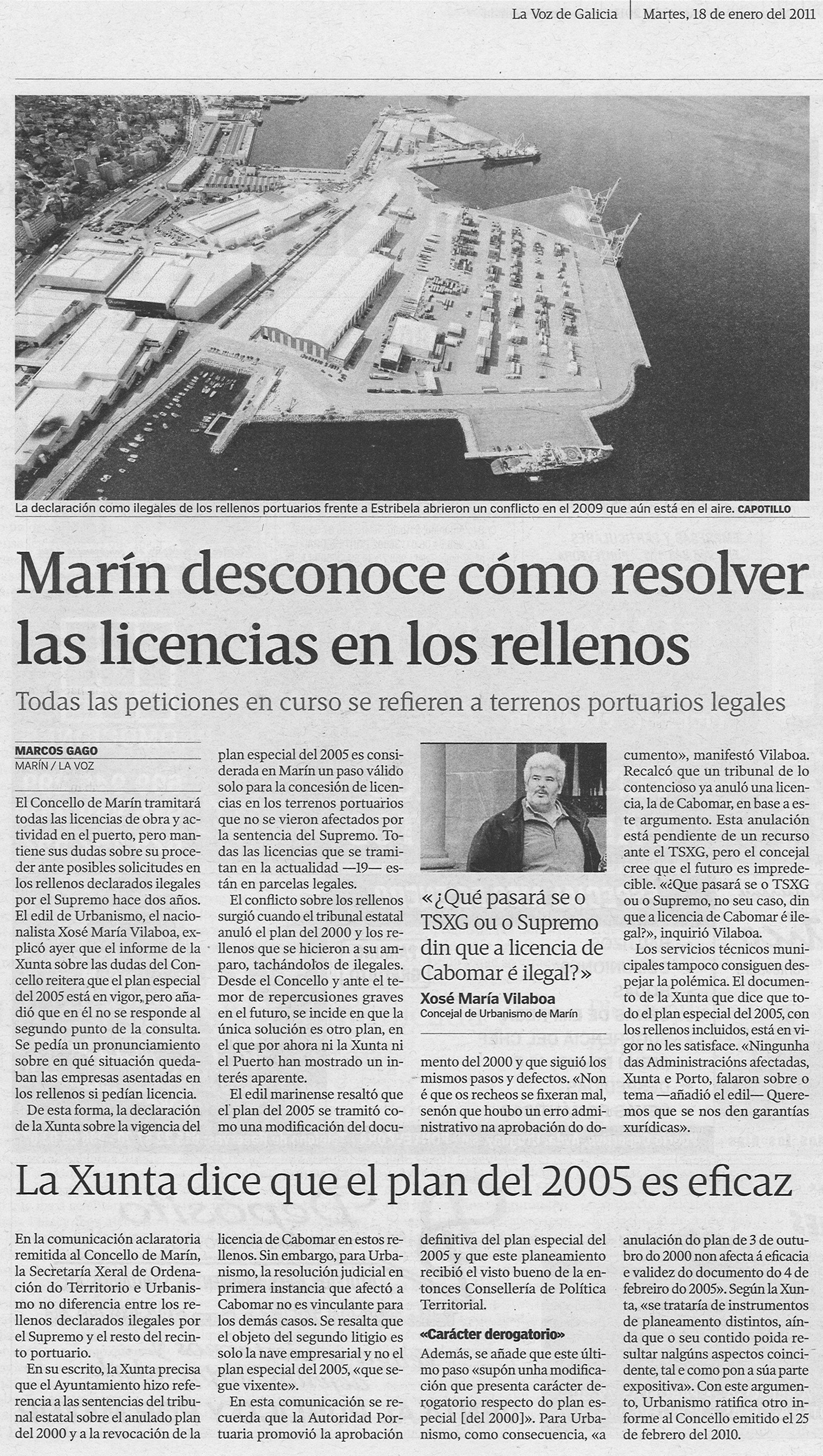 Pero chama poderosamente a atención a hipocresía coa que actúan os políticos, lles sopre o vento por onde lles sopre. O alcalde de Marín é un clarísimo exemplo dese comportamento pouco profesional, obsceno moralmente e politicamente esquizofrénico. Babea cando Louro lle menta o porto, os investimentos públicos cos que se potenciou o seu crecemento, e fachendea ante os seus paisanos políticos do PSOE de ser -de chiripa- o “rei león” dese territorio ante o que se extende un motor de desenvolvemento económico que, precisamente agora, está nun momento crítico de definición, a causa das sucesivas sentenzas xudiciais que declararon a ilegalidade dunha ampla extensión de recheos. Francisco Veiga presume de porto no ceremonioso contexto pre-electoral que os socialistas montaron o pasado fin de semana en Pontevedra. Pero en Marín, na Casa Consistorial, durante o Pleno da Corporación Municipal, o discurso de Veiga é outro ben distinto: agresivo e belixerante co porto, desafiante, inquisitivo e provocador.