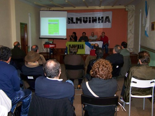 (Nas imaxes, momentos da presentación do documental do Espazo Natural e Arqueolóxico dos Sete Camiños, no anterior local de Almuinha, en novembro do pasado 2010).