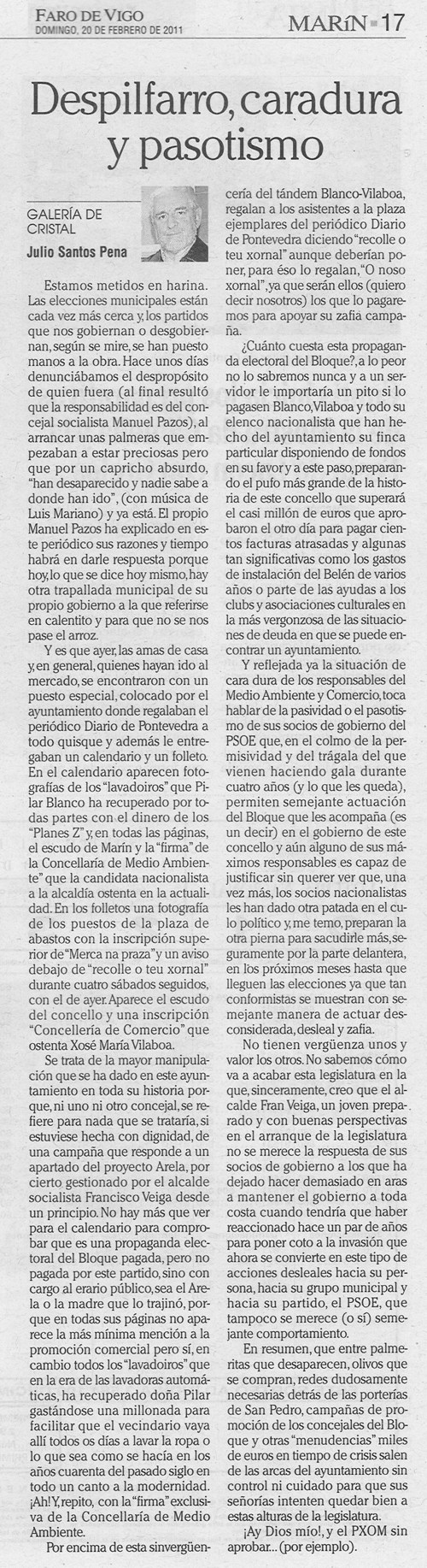 FARO DE VIGO: ARTIGO DE JULIO SANTOS PENA