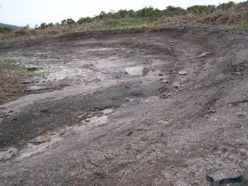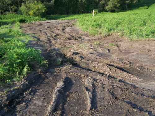 Os peraltes de terra desproporcionados que alteraran a fisonomía do terreo, e que foran provocados pola acción sistemática das rodas, xa quedaron nivelados. Confiemos agora na acción reparadora da natureza, na capacidade do solo para recuperarse e ir borrando pouco a pouco os sinais visibles das rodadas, no avance da vexetación que permita ir consolidando o terreo agredido e revertir o aspecto poirento e inerte causado polos neumáticos.