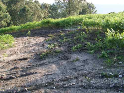 …Un antes e un despois. Un pasado e un presente. O Alto do Pornedo empeza a recuperarse da agresión continua á que viña sendo sometido pola circulación sistemática de motos e quads que provocaron unha severa erosión no terreo, con peraltes de terra que foron medrando impunemente polo paso continuado das rodas.