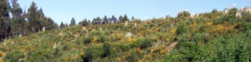 Ademais dos eucaliptos, outra das plantas invasoras máis incómodas que se instalaron no Monte Pornedo é a herba da Pampa ou cortaderia. A colonia máis abondosa desta praga atópase a carón da variante de Marín, no recheo sobre o que se asenta a “área recreativa” do Pornedo. Con razón, esta especie orixinaria de Arxentina aparece espallada dende hai máis de 20 anos nas beiras de estradas e autoestradas. E o motivo de que chegara ao Pornedo non é outro que a procedencia da terra coa que se fixo ese aterramento. No seu día, a Comunidade de Montes de San Xulián estivo encantada da vida cando a empresa que executaba as obras da variante lle montou aí un merendeiro con mesas, bancos, árbores e fonte (hoxe en estado total de abandono e pasto do vandalismo máis salvaxe).