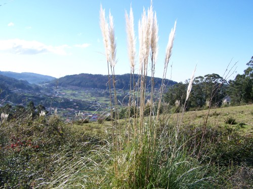 Volvendo ao rego: as especies dañinas. Velaí no Monte Pornedo ducias de penachos pampeiros, que florecerán a partir de agosto, producindo milleiros de sementes que se dispersarán co vento a longa distancia. En Pontevedra fixeron números para exterminala na Illa das Esculturas e na Xunqueira de Alba, posto que para conseguilo cómpre arrincala de raíz e queimala; e tres cuartos do mesmo van facer tamén na marisma de Ponte Muíños. Mentres, en Marín, a herba da pampa segue “pampando” ás súas anchas porque a Concellería de Medio Ambiente (a secas) bastante ten con erradicar da praia da Coviña os restos do cachalote requeterresucitado.