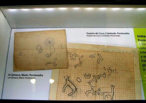 Chama a atención que nunha das seccións do centro de interpretación haxa unha presenza importante dos petroglifos existentes en Marín: aparecen os gravados rupestres da Carrasca, que están inseridos no proxecto de creación do Espazo Natural e Arqueolóxico dos Sete Camiños que tanto apoiamos dende DEFENDE O MONTE PITUCO xunto cunha vintena de colectivos máis de toda a bisbarra. Tamén se enxalza a figura de Ramón Sobrino Buhigas (Pontevedra, 1888-Valladolid, 1946), do seu curmán Enrique Campo Sobrino e do seu fillo Ramón Sobrino Lorenzo-Ruza. A Sobrino Buhigas débenselle moitos estudos sobre os petroglifos de Mogor. Un dos seus descendentes, Ángel Núñez Sobrino, cedeu en depósito unha importante colección de obxectos persoais do arqueológo: prismáticos, cámara de fotos, debuxos, cartas… un legado importante que está agora a disposición de todos e todas.
