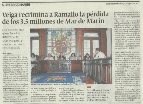 En canto a Francisco Veiga, na súa liña mete-pata habitual. Primeiro queixouse de que se perderan 3,5 millóns de euros para o proxecto Mar de Marín sen que o Concello dera explicacións nin convocara a xunta de portavoces para comunicalo. “O que se criticaba dun lado había que corrixilo agora”, dixo Veiga para referirse a que no anterior mandato a oposición queixábase de enterarse pola prensa de asuntos de índole municipal. Curiosa maneira a do ex-alcalde de recoñecer unha mala práctica política no goberno local do que el era responsable. O voceiro socialista afirmou que “non houbo interese real nin presión” por parte do actual equipo de goberno para conseguir esa subvención europea, argumentando que na anterior lexislatura mesmo foran facer xestións a Madrid e que agora “o único que lles faltaba era rematar a porta baleira”. Por iso volveu sacar o manido tema de que María Ramallo non estivera as 24 horas adicada a Marín como prometera, senón negociando o seu posto na Deputación.