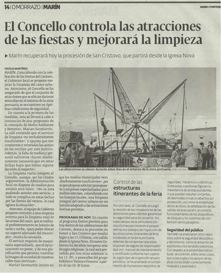 A seguinte pregunta de Francisco Veiga estivo completamente fóra de lugar, máxime nunha persoa que, durante o seu mandato, tivo que lamentar a morte dunha traballadora nunhas tráxicas circunstancias, debido a un erro garrafal de seguridade nas instalacións nas que se realizaba, nin máis nin menos, que unha actividade dirixida a público infantil, e que puido derivar nunha desgracia aínda maior do que foi. Porque hai que ter moito cuajo para preguntar por algo tan serio como o control da seguridade nas instalacións mecánicas das festas do Carme: “Este ano os visitantes van estar seguros indo ás atraccións?” preguntou Veiga moi friamente, deixando caer de forma velada unha sombra de dúbida sobre a responsabilidade municipal neste tema tan delicado. A resposta de María Ramallo sobre o que fixera o Concello foi: “O mesmiño que o ano pasado, exactamente igual”, dixo tallante, en alusión a encomendarlle á empresa Enmacosa as comprobacións oportunas.