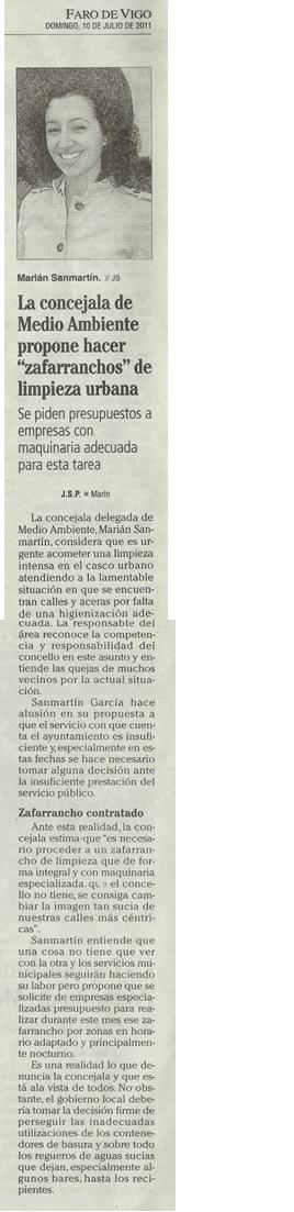 O BNG interesouse tamén pola limpeza das rúas tralos actos do Corpus, con dúas barredoras e sete operarios de Cespa que recolleran os restos das alfombras florais. Preguntou Pilar Blanco se houbera expediente de contratación e máis blablabla. A alcaldesa contestou que na brigada de limpeza non hai persoal abondo e que se pedira orzamento a Cespa e a Urbaser para facer un zafarrancho de limpeza en horario de tarde e noite durante as festas do Carme. Precisamente, fora Cespa a que trouxera recursos humanos e materiais para facer unha demostración coa retirada dos restos das alfombras; demostración que “non custou nada”.