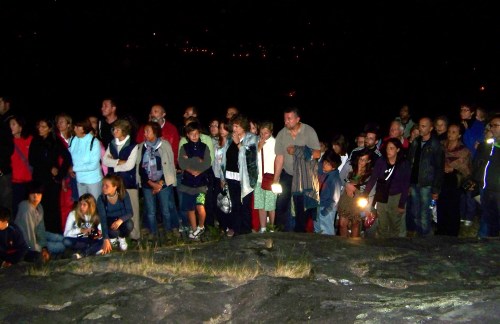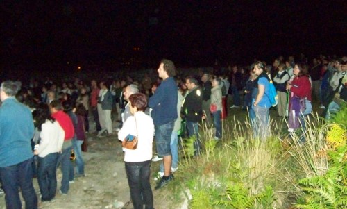 O ano pasado por estas datas estivemos na primeira edición da festa da arte rupestre que organizaba o Concello de Ponte Caldelas no monte comunal de Tourón para participar na visita nocturna que ofrecía o Instituto de Estudos Miñoranos, cun locuaz e amenísimo Xosé Lois Vilar como guía da expedición. Se xa entón a afluencia de público fora masiva, este ano quedámonos curtos se afirmamos con rotundidade que había “unmundodediós” de xente. Máis de 300 persoas, segundo consta na crónica que realizou o propio IEM na súa páxina web. E dámos boa fe: ademais de veciños de Ponte Caldelas, de Pontevedra ou de Marín que nos achegamos ata alí para aprender sobre Prehistoria, arqueoloxía e arte rupestre, achegáronse un grupo ben numeroso de estudantes do Instituto Manuel Antonio de Vigo, cos seus pais e nais.