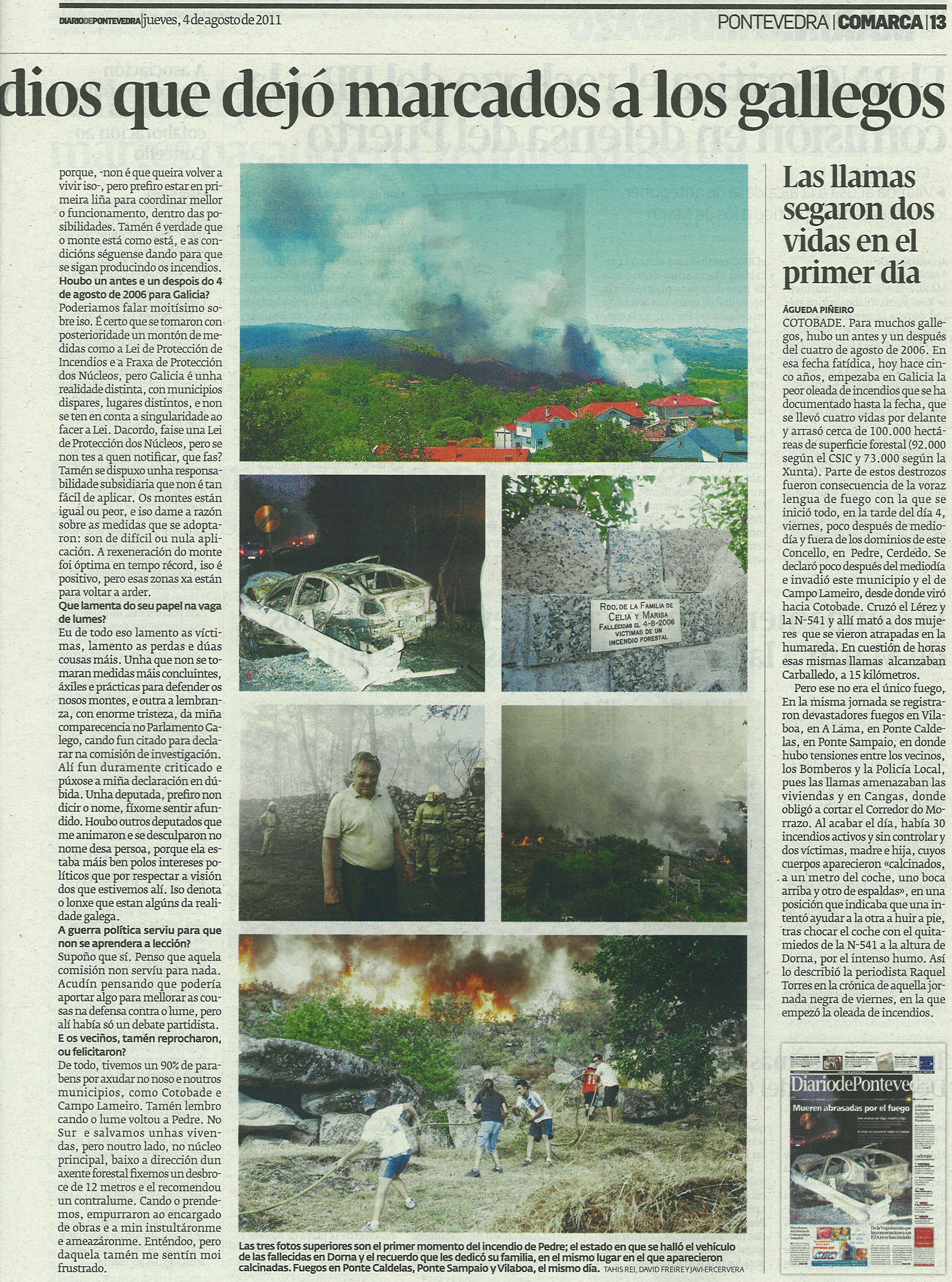 Cómpre non esquecer episodios duros coma estes. Non tanto para evitar que se volveran repetir, cousa que non está da nosa man, senón por dignidade hacia as vítimas do lume e as persoas que traballan na súa extinción.