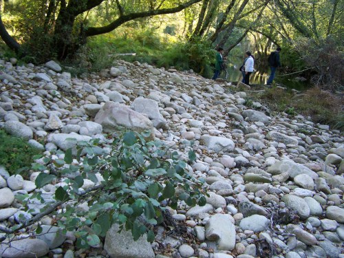 Imos pois de andaina polos camiños, seguindo o curso do río Almofrei cara ao seu nacemento, que discorre polo lugar de Salgueiral na parroquia de Bora. Dende o lugar de As Fincas, coa súa antiga ponte, os primeiros pasos lévannos monte arriba para acabar atopándonos rodeados de carballos, ameneiros e outras árbores frondosas propias das ribeiras. O río baixa escaso de auga a causa da seca e os cantos rodados están ao aire, creando unha imaxe inquedante.