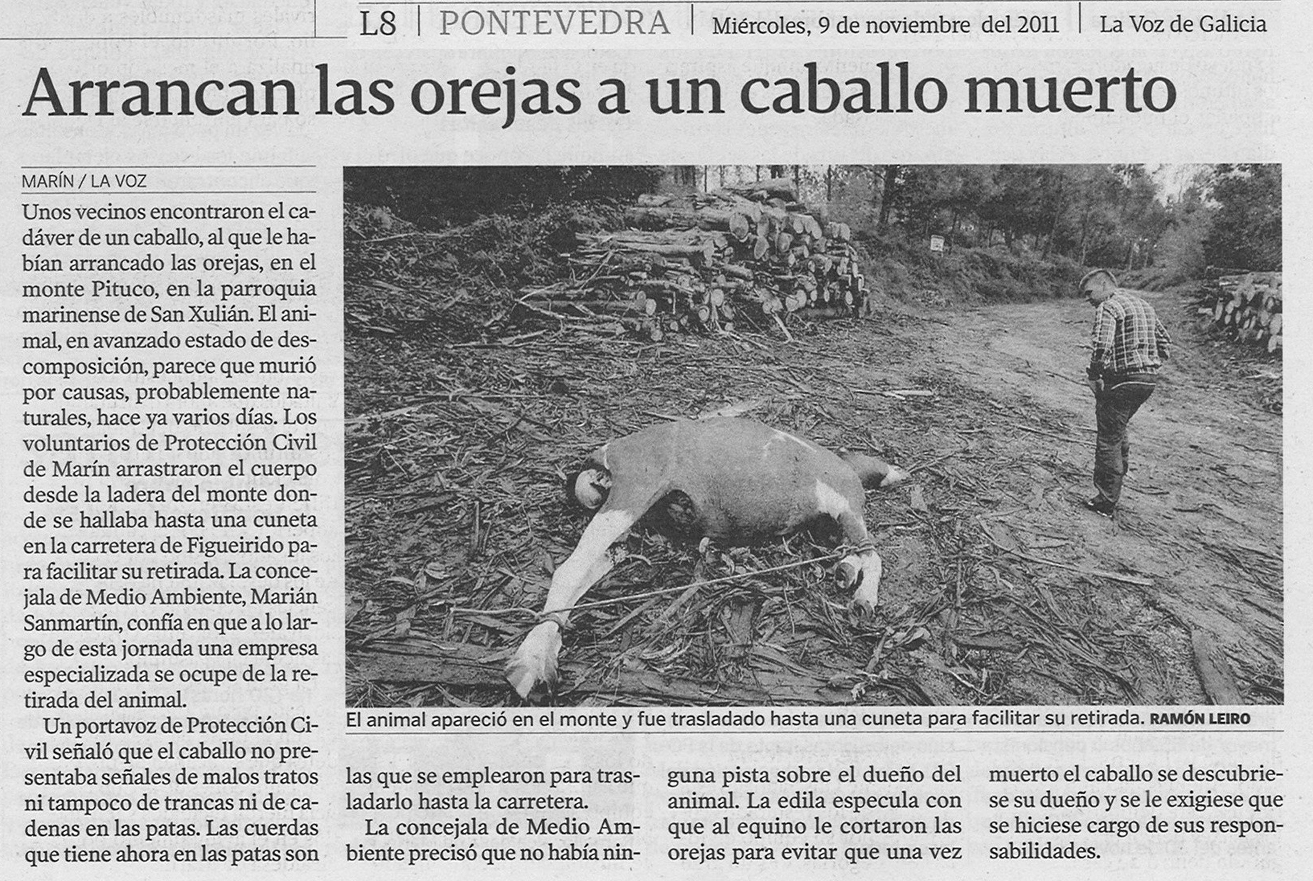 (Artigo na edición dixital do xornal: “Arrancan las orejas a un caballo muerto“).