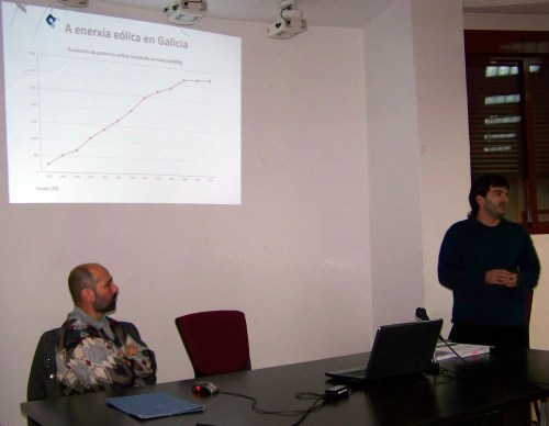 Cándido Martínez, de Luita Verde, e Damián Copena, do Grupo de Investigación en Economía Ecolóxica e Agroecoloxía da Universidade de Vigo, explicaron en Marín as afeccións que provocaría a instalación dun parque eólico no lugar de Pedras Negras, afectando os montes dos concellos de Marín, Moaña e Vilaboa. Trátase dun dos moitos polígonos de muíños que han saturar Galicia de norte a sur, de leste a oeste, debido ao Plan Sectorial elaborado -e varias veces modificado- pola Xunta. A Plataforma en Defensa dos Montes do Morrazo e os colectivos que a conforman presentaron este verán un documento de suxerencias en contra da construcción deste parque eólico que lle foi adxidicado á empresa italiana Enel Green Power. Pero o proceso aínda vai para longo, posto que máis adiante suponse que haberá unha exposición pública, momento no que se poderán presentar alegacións.