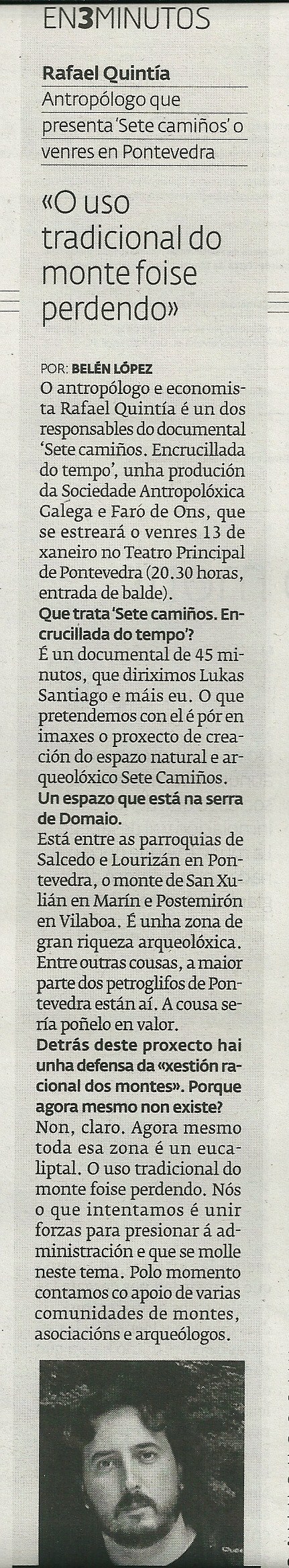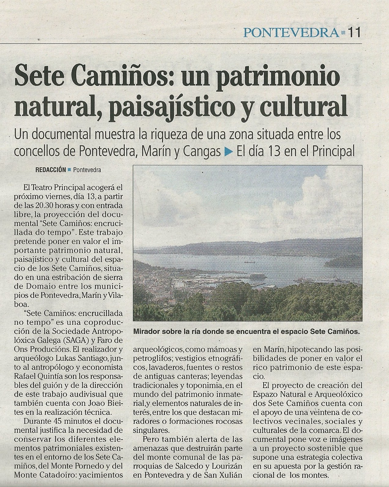 No Faro de Vigo: “Sete Camiños, un patrimonio natural, paisajístico y cultural“.