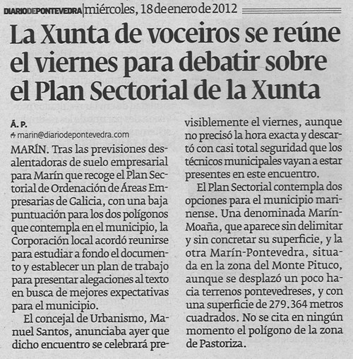 Publicado en Hemeroteca, Xeral | Etiquetas: Chan industrial, Concello de Marín, Política
