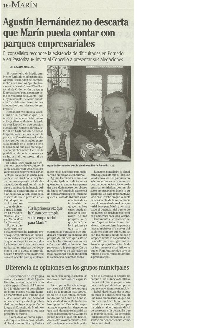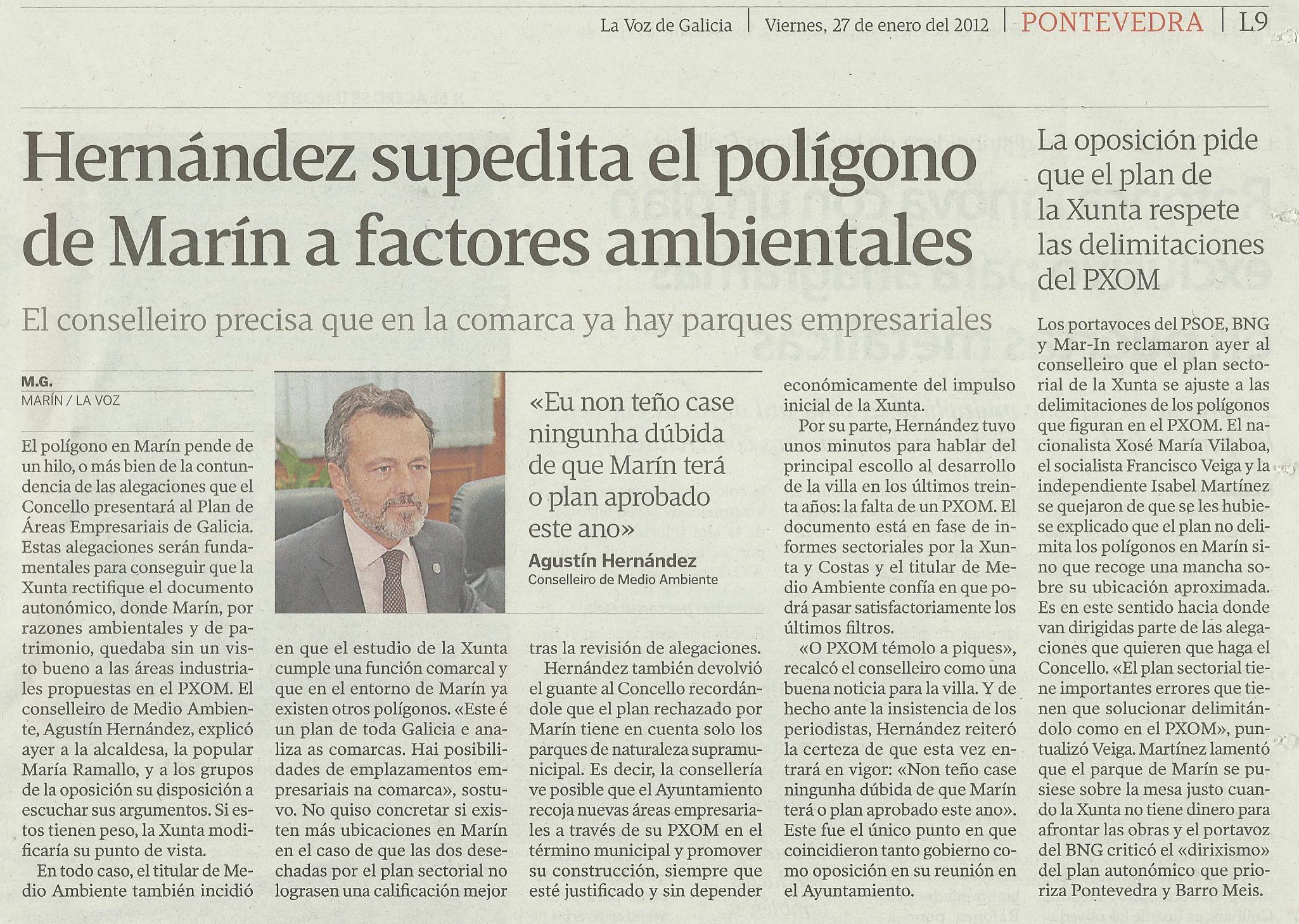 “Hernández supedita el polígono de Marín a factores ambientales“.
