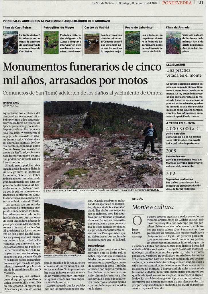 6. […] ou por descuido, como as motos que fan trial sobre as mámoas do Morrazo, tal e como dab a coñecer La Voz de Galicia non hai moito. Convencido de que a única vía para a conservación do noso patrimonio cultural […]