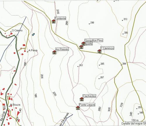 O manancial de Gorgullón do Pino ou Fonte das Pulgas diríxese aos lugares de Souto do Carregal, Casal e Laxe. Grazas ao interese e o esforzo dos nosos antergos, esta conducción de auga chega ata este outro extremo da parroquia.