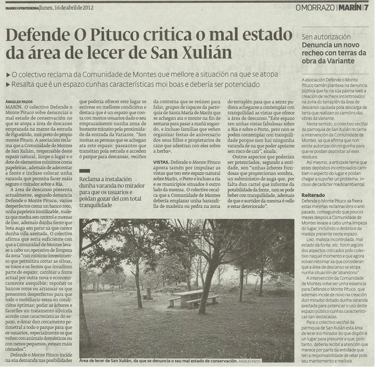 Esta información publicada no Diario de Pontevedra corresponde co artigo titulado “A ÁREA DE DESCANSO, ETERNA ASIGNATURA PENDENTE“.