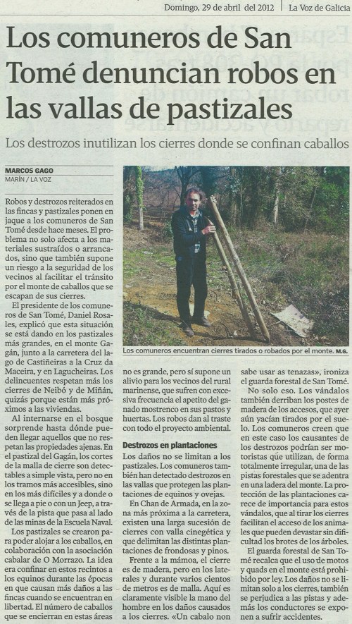 La Voz: “Los comuneros de San Tomé denuncian robos en las vallas de pastizales“, por Marcos Gago.