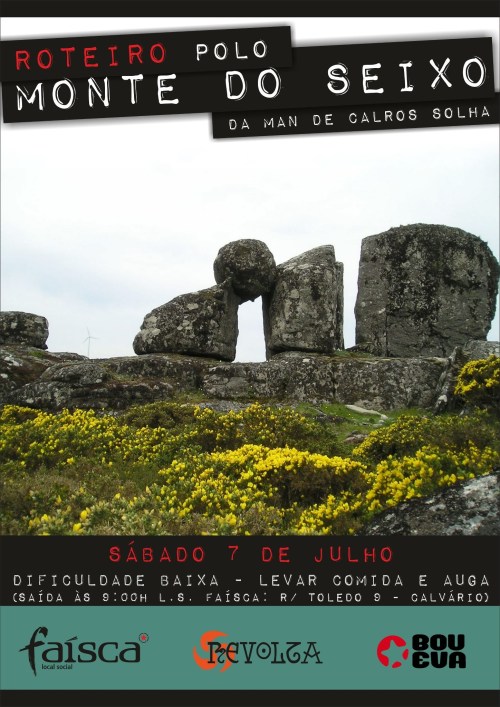 -o roteiro que guiará o profesor e escritor Calros Solla polo Monte do Seixo, a montaña máxica por cuxa conservación loitaron durante anos para evitar a instalación dun parque eólico que finalmente chantou un feixe de aeroxeneradores entre penedos de singular valía simbólica.