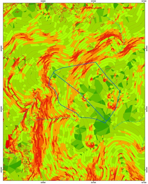 O INFORME TÉCNICO encargado por DEFENDE O MONTE PITUCO sobre a superficie afectada pola plataforma loxística Marín-Pontevedra revela a existencia de “pendentes elevadas do terreo nun 25% da superficie prevista como parque empresarial”. Unha porcentaxe nada desdeñable.