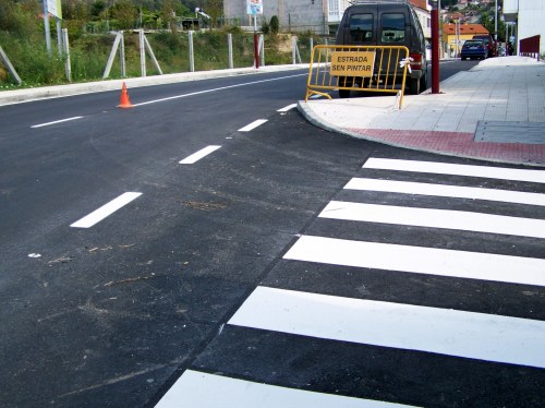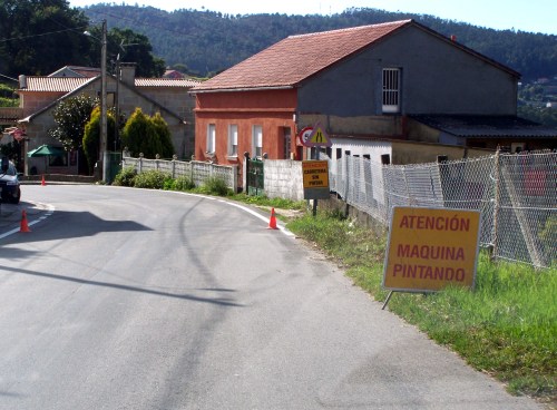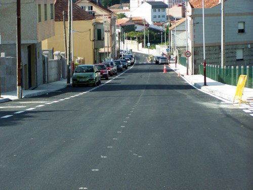Non é normal “celebrar” este tipo de actuacións na rede viaria, pero o tempo que a veciñanza da parroquia levaba agardando que as obras de reforma desta estrada se concretaran, ben merece unha expresión de ledicia colectiva. Porque despois dos tira-puxas entre a Deputación e o anterior Goberno local, despois das negociacións -unhas máis arduas que outras- cos propietarios dos terreos para acadar a cesión do espazo que ocuparían as beirarrúas, despois da construcción das mesmas, despois da instalación das barandillas e do alumeado público, despois do fresado e do asfaltado do vial… só faltaba que se marcaran os carrís de circulación e as marxes dos aparcadoiros.