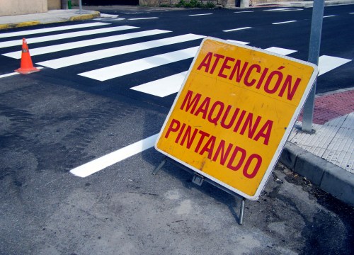 Este día da Hispanidade non é festivo para todos. Entre os que traballan, non só están bombeiros, policías, persoal sanitario… tamén os operarios da empresa que neste 12 de outubro se adica a pintar a sinalización horizontal na estrada de San Xulián, entre o cruce coa barriada de San Pedro e a Casa de Montes.